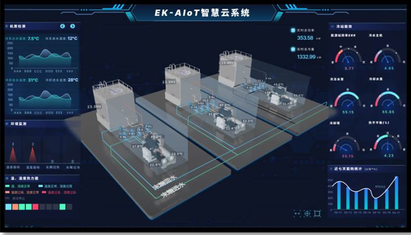 云智慧高效集成冷站结合高效机房设计理念标准化BIM三维设计,加入了高效机房控制系统及能耗能效检测,为客户提供EK- AIoT智慧云平台控制功能,可以远程控制与监测,确保机组高效运行,为客户降低全生命周期使用成本,缩短客户投资回报周期,帮助客户轻松实现工业全年运行综合能效EERao超过4.50!